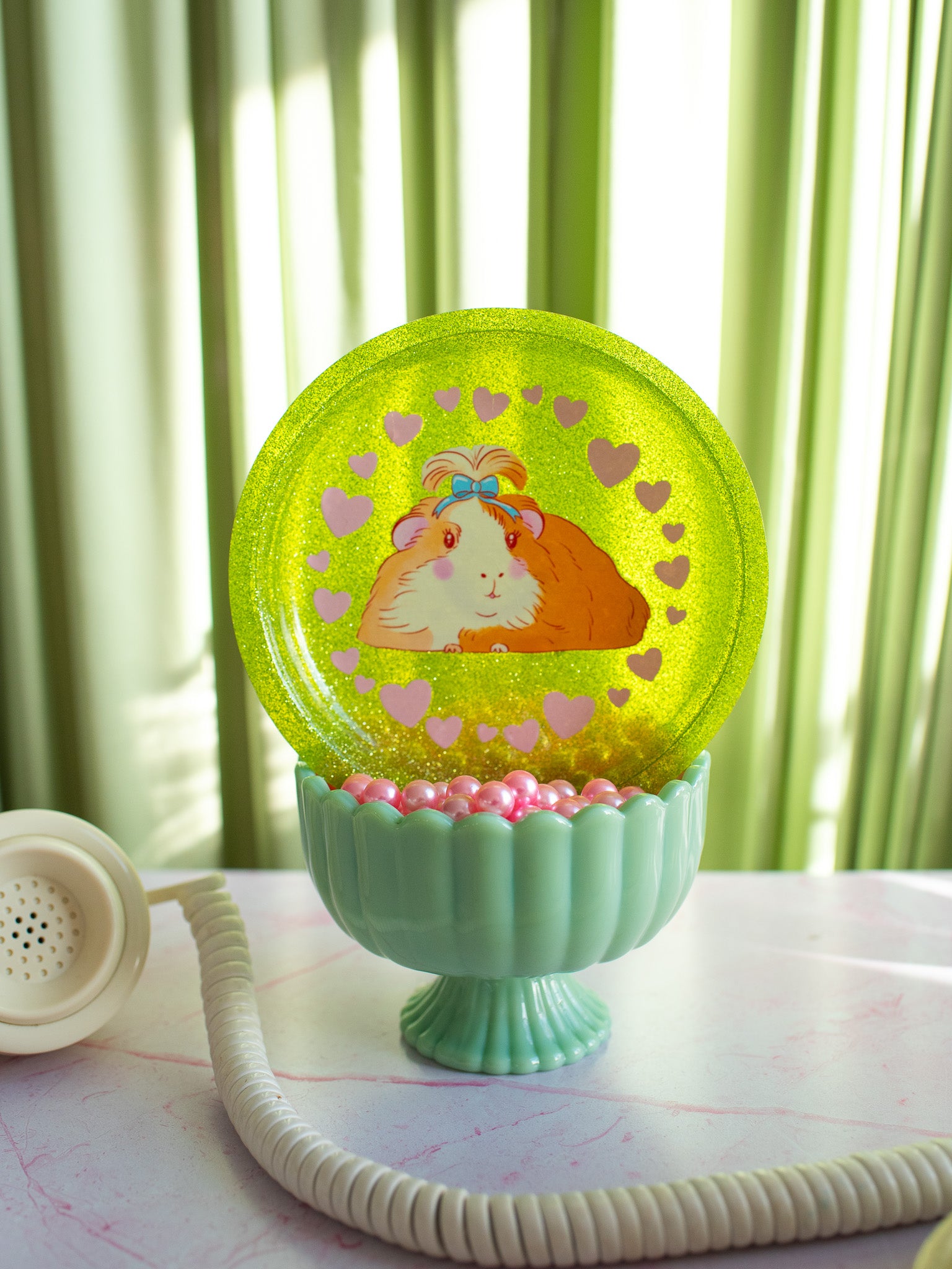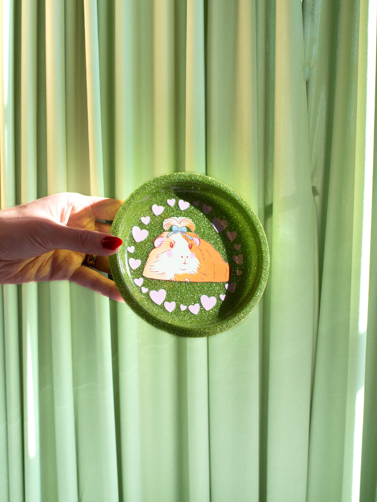 This tray is made from a gorgeous glittery green acrylic and is perfect for rolling or you can even use it as a trinket tray! Features a guinea pig with a hair bow π drawn by Claire Shadomy!