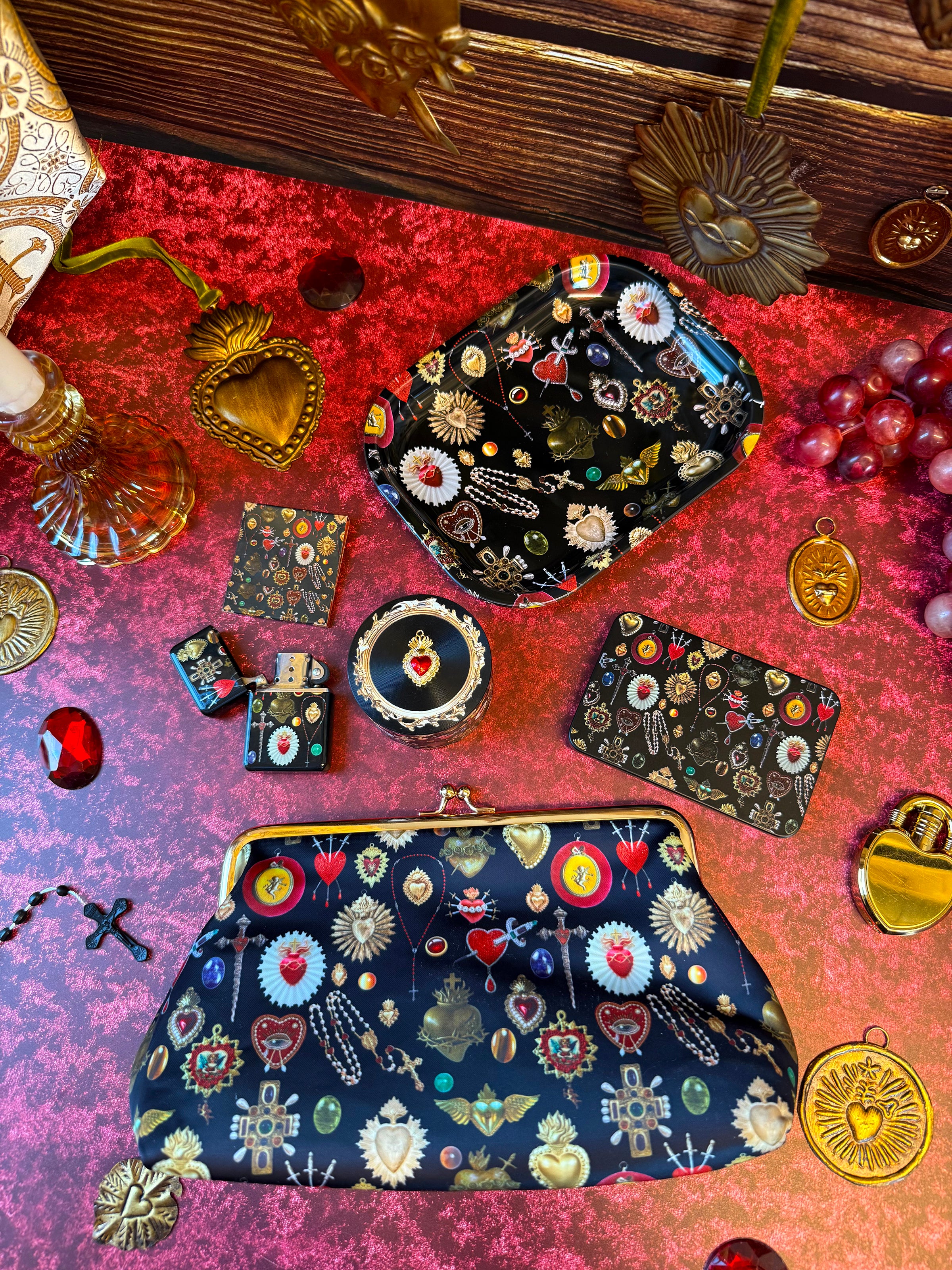 This tray features our iconic sacred heart print- serving sacred, sanctimonious Catholic guilt. Perfect for use as a rolling tray or as a lil trinket tray around your home!