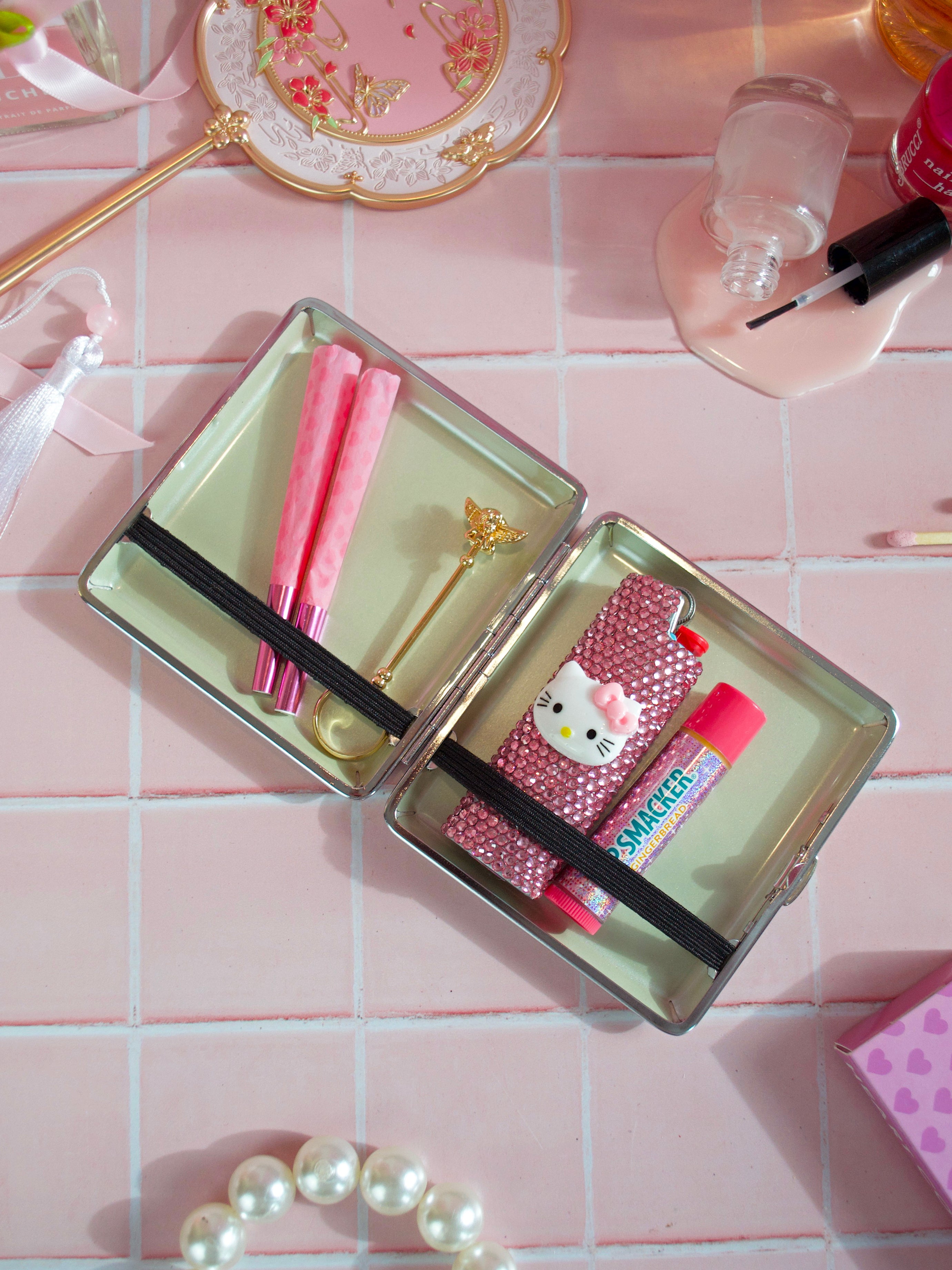 This darling cig case is giving swan princess and we are so here for it!! A slim, practical case that's perfect for storing cigs, pre-rolls, lighters, and other everyday essentials. Also perfect for cash, cards, lip gloss, whatever else fits! Its compact design fits easily in a bag, while the non-see-through material keeps your items discreet while on-the-go! Cute and functional, we love!