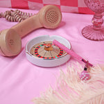 Joint stays clipped between the silver claws on the bottom of the clip. Real pink dice are the base of these clips.