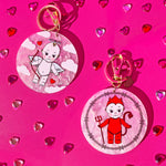I'm just a baby angel/devil! This keychain features an angel kewpie on one side and a devil on the other. One for each of your personalities!