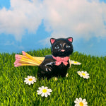 This striker is shaped like the cutest little tuxedo cat you've ever seen! Comes with 25 matches measuring 3.75" each, stored conveniently inside the cat! When you need a light, tilt it over and strike a match on the base! Looks great on a desk, coffee table, shelf, etc!